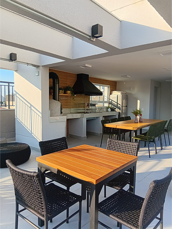 Rooftop: Churrasqueira, Forno de Pizza, Redário, Lounge Externo e Piscina Adulto com Solário.
